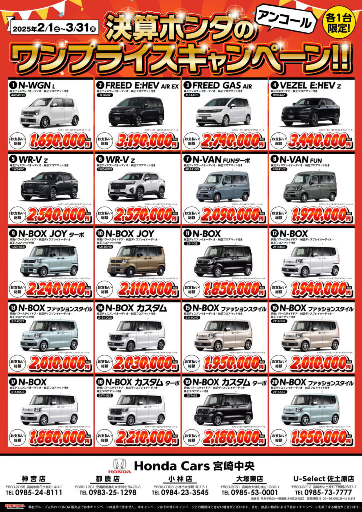 アンコール開催決定!ワンプライスキャンペーン2月~3月末まで延長決定!