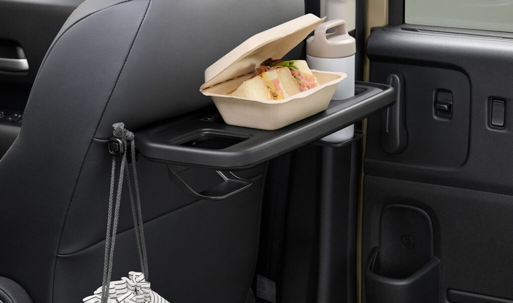 後部座席に取り付けるシートバックテーブルは、長時間のドライブでお子様が軽食を楽しむ際に便利です。折りたたみ式で、使用しない時はコンパクトに収納できます。