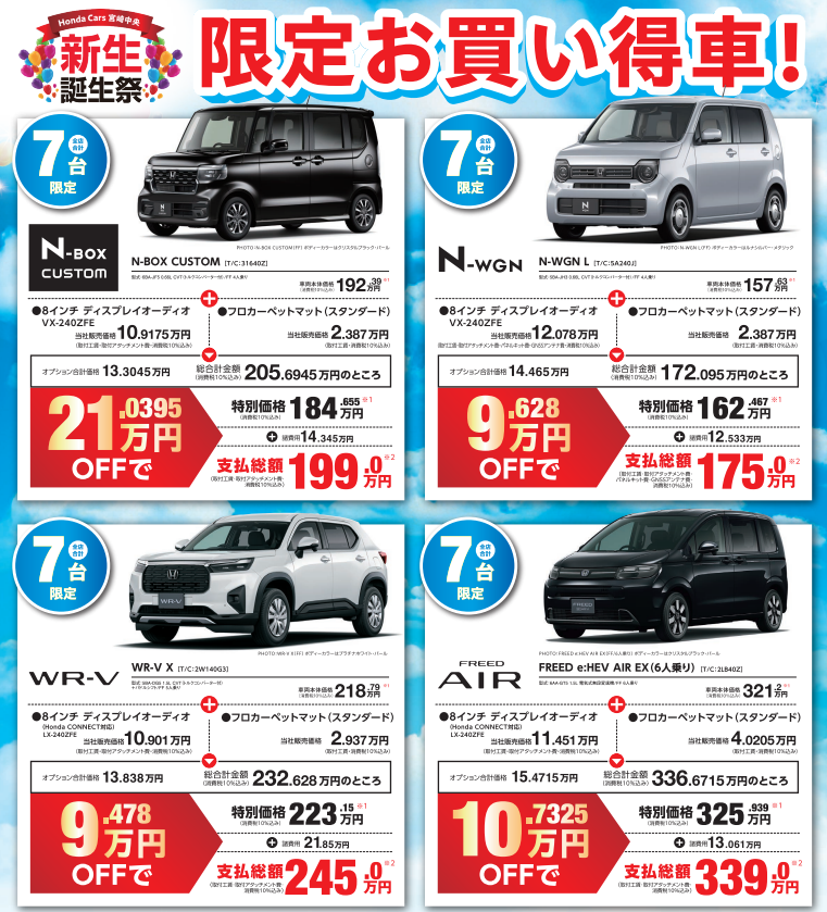 人気の4車種を、この期間だけの特別価格・支払総額でご用意いたしました 。